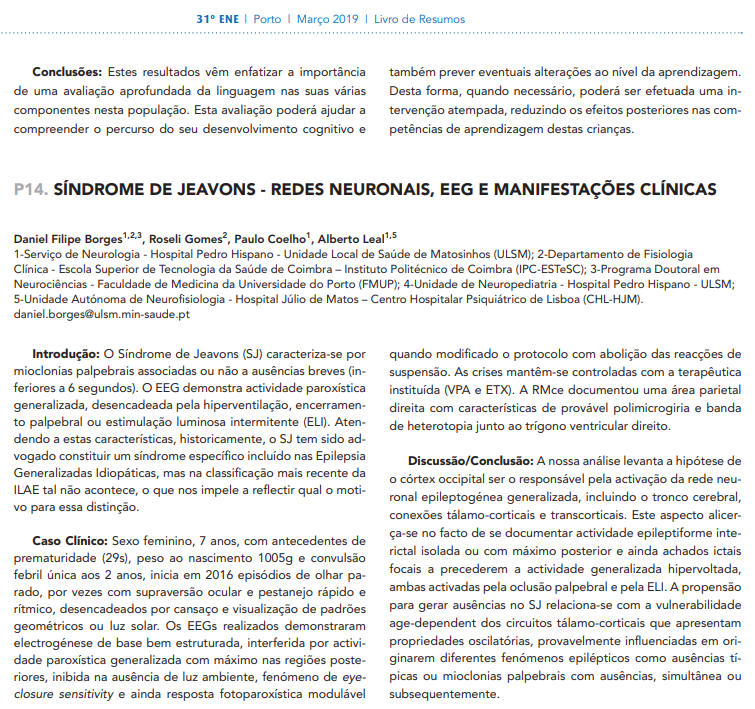 Síndrome de Jeavons Redes neuronais Eletroencefalograma Epilepsia